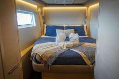 Accommodates 8 guests in 4 cabins with 3 ensuite heads w/ enclosed showers.Crew will take starboard aft cabin