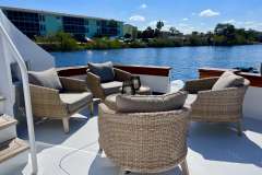 Ready II Play’s spacious layout offers 3 bars, 3 dining areas and an expansive aft deck area for fine dining, lounging, and of course playing! Our executive business station, along with Starlink onboard, enables uninterrupted business video calls and communication.