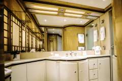 All staterooms have marbled en-suite bathrooms with enclosed showers. Each bedroom also has its own “smart” flat-screen televisions, with Starlink access, Bluetooth stereos and individual climate control, air conditioned 24/7.