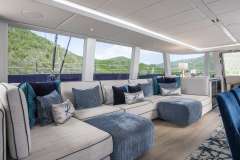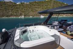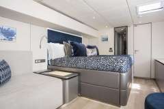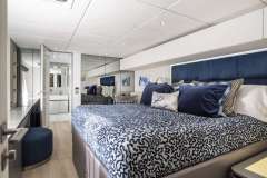 Her sleek design, spacious accommodations, and abundance of amenities, including an expansive flybridge with sun beds, couch and chairs, a large Jacuzzi nestled by sapphire lounge beds, and a wide range of watersports equipment, offer guests the ultimate in luxury and comfort. After a day of fun in the sun, indulge in a refreshing rinse under the gentle cascade of the cockpit rainfall showers.