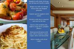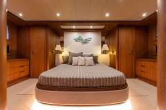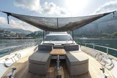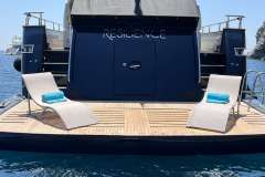 She features welcoming and refined interiors, finely appointed. The lower deck includes the night layout and offers accommodation for up to 10 guests in 4 luxurious staterooms: a full beam double bedded Master stateroom with walk-in closet, en-suite toilet and Tv Lcd-Dvd.