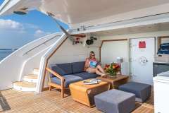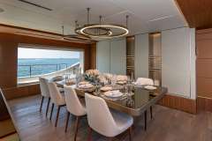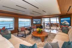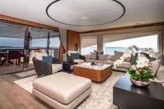The living interior space is inviting with large picture windows and light contemporary styling with comfort kept in mind. The main deck features a large L shaped sofa and an open formal dining area. The skylounge is the perfect place to unwind after a busy day and watch your favorite film.