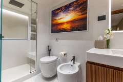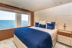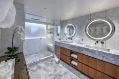 RISING DAWN can accommodate up to 12 guests in 6 luxurious staterooms. The modern master stateroom is forward on the main deck and features an ensuite with a his and her sink and a large shower. Four staterooms are located below deck, all with their own ensuite. Two staterooms feature a queen bed and two twin staterooms with a pullman bed. The remaining stateroom is on bridge deck and features a queen.