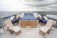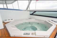 RISK & REWARD offers diverse outdoor areas, with the sun deck standing out as a captivating entertainment hub, generous aft decks, and a Jacuzzi with a custom-made Sun Lounger, allowing guests to soak up the sun and enjoy stunning views. With the addition of a newly purchased 39' HCB, water activities will be a once-in-a-lifetime experience.