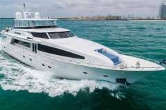 Presented by Amwax Prime, the majestic charter yacht RISK & REWARD is a 120 ft yacht featuring a jetski and a hot tub. The primary distinction of RISK & REWARD are her impeccable styling and alfresco dining areas. She was delivered by the renowned boatbuilder Crescent in 2004. A comprehensive refit was finalized in 2023. The well-planned yacht layout features 4 cozy cabins and easily accommodates a group of 9 guests.