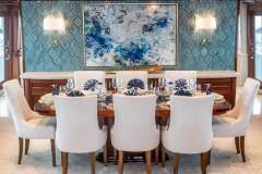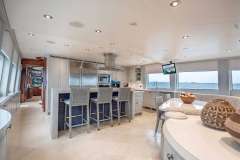 Onboard, RISK & REWARD features expansive living spaces designed to provide a luxurious and serene experience for its guests. The interior decor showcases a combination of premium materials, elegant furnishings, and state-of-the-art amenities. RISK & REWARD offers spacious lounges, multiple dining areas, and four beautifully appointed cabins to accommodate guests in comfort and privacy. A separate gym/workout room is available for those who prioritize fitness even while on holiday.