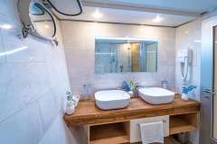 - 2 double cabins with double beds (180x200 cm). Private bathroom with shower box and home-type toilet.