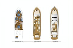 Modern, fast and luxurious, Riviera offers accommodation for up to 9 guests in four wonderful cabins located on the lower deck. Both the master and the VIP suite are full-beam, this means they're very spacious, light and airy. One of the two twin cabins offers an additional Pullman bed; All cabins have en-suite facilities and flat screen TV.