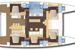 SAIL AWAY, Lagoon 620 launched in Spring 2014, accommodates 10 guests in 5 double cabins (queen beds) with en suite bathroom and separate showers.The queen beds dimensions are 81"x 63".
