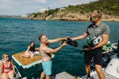 With respect to water sports, her tenderlift is an ideal sunbathing platform while its 17" and 90 HP tender is perfect for waterskiing, wakeboarding and kneeboarding. Besides snorkeling gear, fishing rods with stand, she is also equipped with a flybridge with a cocktail table, cushions, mattresses and a bimini. For Sail Away's scuba diving guests, rendezvous diving can easily be arranged.