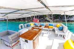 At the bow there are two more sunbeds, beanbags, dolphin seats and brand-new trampolines for soaking up the sun.