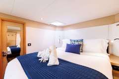 Sandy Cinco sleeps eight guests in 4 beautiful ensuite cabins: the king-size primary suite and three queen VIP suites.
