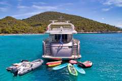 Children and adults alike will delight in her range of water toys, and her modern AV system also includes a Playstation 3, making sure everyone on board is kept entertained throughout the charter.