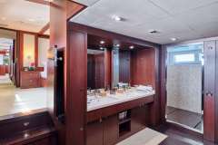 The elegantly designed cabins are a blend of traditional wooden elements and chic, neutral colours. Two of her cabins can be turned into triples, and she can also accommodate two extra guests in her salon, which makes her a great option for families and large, mixed groups. Her stunning full-beam master is located on the main deck, and is complete an ensuite that features a generous mirrored walk-in closet.