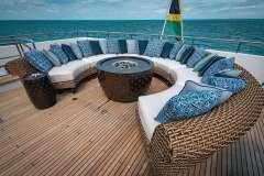 Five ensuite staterooms luxuriously accommodate up to 12 guests, featuring an ondeck Master, a lower VIP with King, an additional custom KING stateroom mid-ship and two Twin cabins with Pullman berths- one Twin cabin is aft via a separate staircase and is ideal for older kids. All staterooms are equipped with HD TV's, Apple TV, Crestron. All staterooms have been refurbished and redesigned to create unique and modern spaces with a luxurious feel. The ondeck master has a King bed at the centerline, a comfortable lounging area to port and a vanity table to starboard with plenty of storage and a full hanging closet. The master ensuite features double granite sinks, full shower, separate bathtub and a separate toilet and bidet closet.Below deck features the well-appointed VIP with King bed, vanity, walk in closet and ample storage space. The Portside KING stateroom is just aft of the VIP, mid-ship. Also Midship, the Starboard Twin stateroom has amble space, hanging closet and a spacious pullman. Another Twin stateroom is aft with a separate staircase. This stateroom is ideal for older kids or an adult seeking just a bit more privacy, this room also has a hanging closet and Spacious pullman.