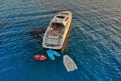Offered by Amwax Prime, the breathtaking charter yacht SEA U is a 72 ft yacht. The main attractions of SEA U are her impeccable styling and alfresco dining areas. She was delivered by the renowned boatbuilder Riva in 2001. An elegant refit was fulfilled in 2021. The well-planned yacht layout features 3 cozy cabins and comfortably accommodates up to 6 guests.