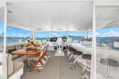 The modern clean lines of Sea Glass 74, a Horizon PC74, have been skillfully created from the drawing board of renowned designer, JC Espinosa, known for his flair for designing very elegant mega yachts. Sea Glass 74 is a stunningly beautiful power catamaran with free-flowing lines, a superstructure that is pleasing to the eye and draws your attention to study her complex simplicity. The yacht’s luxurious, plush interior sets her apart.