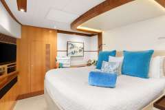 SEAGLASS 74 offers her guests bespoke comfort and room in a main-deck primary king suite, two forward king suites, and an amidships convertible twin -OR- king suite.Cabin arrangement of SEAGLASS 74?