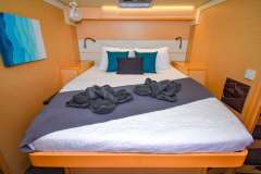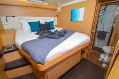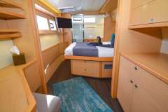 3 queen cabins, private en-suite bath (electric head, wash basin and large stall shower), lots of storage and separate access directly to the aft deck.BERTH MEASUREMENTS:
