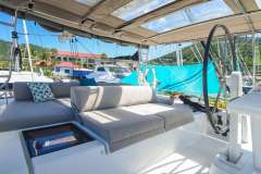 Shangri La is an exceptional 2016 52' Lagoon sailing catamaran with 3 beautifully decorated queen cabins each with private ensuite baths including electric heads, vanity and separate showers. She boasts multiple areas to sit and relax or sip a cocktail and enjoy the cool trade winds of the beautiful blue Caribbean water! The well-decorated salon will seat all guests in comfort for lounging or dining. The luxurious exterior offers alfresco dining , top deck seating and lounge area in front of helm plus forward lower deck lounge area behind trampolines. With numerous areas to unwind, there is plenty of space for gathering as a group or finding a private place to really relax.