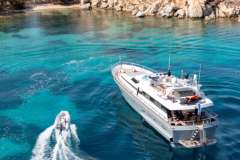 Introduced by Amwax Prime, the astonishing charter yacht SHIVA is a 86 ft yacht featuring a jetski. The promiment features of SHIVA are her well-chosen interiors and interconnection with the sea. She was delivered by recognized shipbuilder Cantieri di Pisa, Italy in 1996. An elegant refit was delivered in 2022. The expansive yacht layout features 5 large cabins and easily accommodates a group of 12 guests.