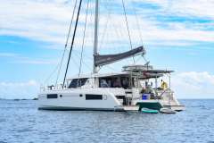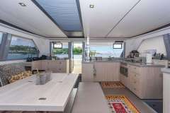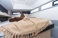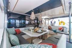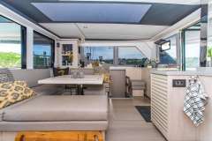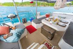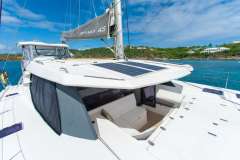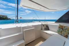 Designed with adaptability as a key element, we are excited to showcase a superb example from Leopard Catamarans: the Leopard 45. This model epitomizes the ideal balance for outdoor living enthusiasts. It includes a cozy lounge area, a table for gatherings, a sunbed for relaxation, and provisions for outdoor speakers and a protective shade awning. The unique floating stairs leading from the aft cockpit make access seamless. The standout feature of this forward cockpit, distinguishing it from others in its category, is its expansive space. It comfortably accommodates all 4 passengers, allowing free movement even while sailing, without interference from the boom and ample headroom. Additionally, the strategic placement of the helm station is a distinctive characteristic of Leopard Catamarans. This thoughtful design enhances the sailing experience, blending functionality with luxury. SISU will exceed all expectations on charter!