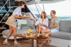 Every moment on board the Sol Madinina is one of infinite comfort. Her expansive flybridge provides the perfect setting for alfresco dining, sunbathing, or simply taking in panoramic views of the open ocean. With ample space for entertaining, guests can gather for cocktails at sunset or enjoy a moonlit dinner under the stars. Every surface, finish, and furnishing has been thoughtfully selected to create a harmonious blend of luxury and nautical precision.