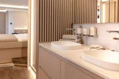 Stretching an impressive 24 meters (nearly 79 feet) in length, the Thíra 80 offers unmatched space and versatility. Her expansive layout accommodates five lavish cabins, each meticulously designed for privacy and relaxation. The crown jewel of these accommodations is the master cabin, a private sanctuary complete with a personal jacuzzi—a rare and indulgent feature that sets the Sol Madinina apart from her peers. Each of the five cabins is also equipped with its own electric toilet, ensuring the utmost convenience and modernity for all guests on board.