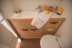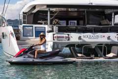 Introduced by Amwax Prime, the astonishing charter yacht Soleanis II is a 62 ft yacht featuring a jetski. The most valuable elements of Soleanis II are her generous space and inviting socializing areas. She was completed by the ship builder Lagoon in 2017. A comprehensive refit was finalized in 2024. The well-planned yacht layout features 4 generous cabins and comfortably accommodates a maximum of 8 guests.