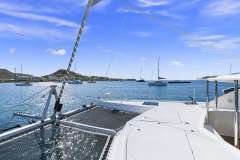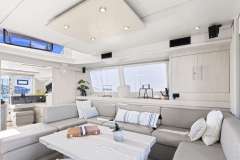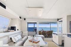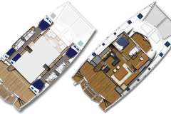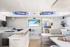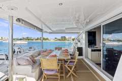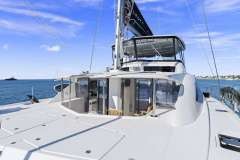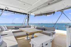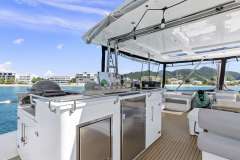 Among the many intriguing features of the Leopard 58, the expansive flybridge with seating for up to 10 people is one of the most exciting. This large flybridge is perfect for meals, lounging, and taking in beautiful panoramic views. The large open aft deck and forward cockpit offer ample space for alfresco dining or lounging. To enhance durability and beauty, the flybridge, the aft deck and forward cockpit are all covered in TekDek, a lightweight high impact simulated teak.