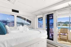 SOMETHING WONDERFUL accommodates 8 guests in 4 Queen cabins (One of the queen cabins may be traded out for a Twin cabin).The full-width master suite on the main deck has a queen size bed, en suite bath with shower and toilet and a private cockpit forward. The adjoining study and bedroom can be open or closed off from each other. On family charters a blow-up mattress bed for a child can be made up in the office.