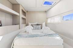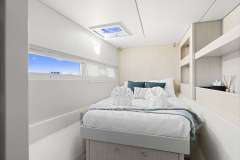 The crew occupies the stbd aft queen cabin which is slightly smaller than the other guest cabins. By prior arrangement, the crew will move to the twin cabin and make the aft queen available to guests.