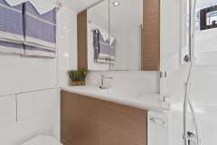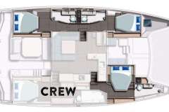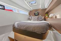 Relax in one of three queen en-suite cabins, each with zoned air conditioning for personalized comfort. Enjoy breathtaking 360° views from the flybridge's U-shaped settee and sunbed, or lounge on the trampoline as the sea breeze whisks you away.