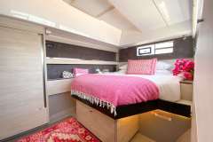 Southern Charm features 4 different social gathering areas which include the forward cockpit seating area, the Sky lounge the aft cockpit and salon area. Guests will enjoy the ability to sit with friends, family and guests in an area that accommodates 12 people at a time or a cozy 3-4 people for a more private setting. All cabins feature oversized queen beds with added comfort topper with high quality linen sheets. Each cabin has its own private head, bathroom with toilet (head), sink and walk-in shower with platseak comfort, non-slip flooring. Cabins also include a closet and drawers for storage.Captain Only