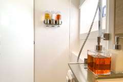Southern Charm features 4 different social gathering areas which include the forward cockpit seating area, the Sky lounge the aft cockpit and salon area. Guests will enjoy the ability to sit with friends, family and guests in an area that accommodates 12 people at a time or a cozy 3-4 people for a more private setting. All cabins feature oversized queen beds with added comfort topper with high quality linen sheets. Each cabin has its own private head, bathroom with toilet (head), sink and walk-in shower with platseak comfort, non-slip flooring. Cabins also include a closet and drawers for storage.