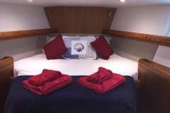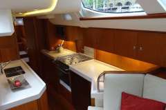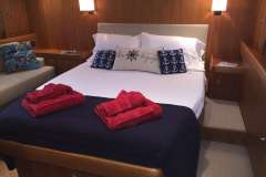 Forward of the salon is a centerline double cabin with and a twin cabin with bunks. Port and aft of the salon is the galley. Starboard and aft of the salon amidships, is a cabin with upper and lower bunks, followed by a full beam master suite.Cabin arrangement of SPIRIT?