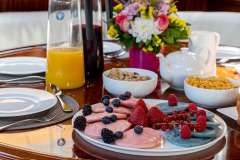 Historically, this yacht was the Royal Yacht of the GRIMALDI Family of Monaco, built by and for Princess Grace and Prince Ranier III. SPIRIT L was originally built by CCYD in Venice, Italia, in 1984 as ‘STALCA II’ to the order of HH Prince Ranier III of Monaco and his American actress wife Grace Kelly for sailing with their three children: Stefanie, Albert and Caroline. From their combined names, came the boat name STALCA. Since our acquisition and subsequent complete control of SPIRIT L, we have full reconditioned and painted her 26mt (85′) hull to the deep midnight blue.