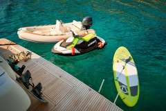 Presented by Amwax Prime, the impressive charter yacht STELLA D’ORO is a 74 ft yacht featuring a jetski. The most valuable elements of STELLA D’ORO are her absolute comfort and alfresco dining areas. She was completed by the renowned boatbuilder Ferretti in 2007. A comprehensive refit was finalized in 2023. The spacious yacht layout features 4 generous cabins and comfortably accommodates a maximum of 8 guests.