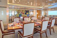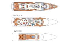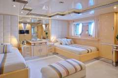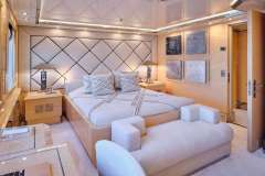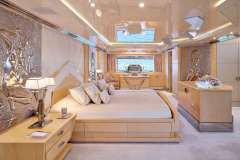 1 x Master Suite with owner's study, king size bed (his and her bathrooms) and full beam sitting area, located on the main deck.1 x VIP Stateroom with queen size bed located on the upper deck