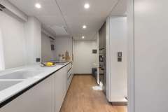 Galley is down in the port hull aft.