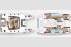 Swan is a 4 cabin catamaran, comprising 4 queen cabins with ensuite bathrooms. The midship cabins are for the crew with their own head.