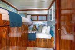 6th Guest Stateroom: One Single bed with adjacent bunk bed to accommodate children or staff. Hanging locker and drawers, 36 HDTV with individual satellite receiver. This stateroom shares the en-suite bathroom with the Port side King/Twin Convertible Guest Stateroom.