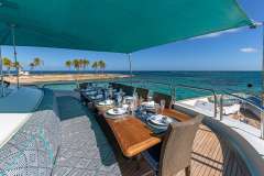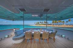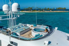 BRIDGE DECK AFT: Full sun, but with the ability to create shade with optional sun shade sail triangles. Al fresco dining for 10, chaise lounges, access to sun deck or walk-around to Portuguese Bridge.