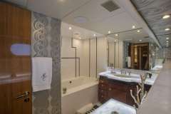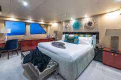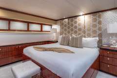 SWEET ESCAPE can accommodate 10-12 guests in 5-6 staterooms (3 King, 2 Convertible Twin/King, 1 single plus 1 bunk), with 5 ensuite bathrooms.MASTER STATEROOM: Lower Deck, amidships. Full beam Stateroom with walk-around Sleep Number King bed,mini-refrigerator, desk, and settee. Separate His-and Hers en-suite amenities featuring: Jacuzzi tub with overhead shower, sink, head, walk-in closet, and vanity dresser for Her; Steam shower with bench seat, head, sink, and walk-in closet for Him. Entertainment system featuring Bose surround sound, 60 HDTV with individual satellite receiver, and iPod docking station. Port holes in the master stateroom as well as his-and-her en-suite create abundant natural light if desired. Complete blackout option also available.