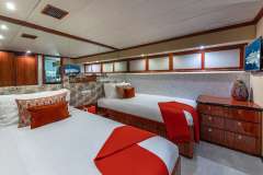 CONVERTIBLE TWIN/KING STATEROOM TO STARBOARD: Lower deck amidships: Two twin-sized beds (extra-long) convertible to 1 King bed; en-suite with shower. Entertainment system with Bose surround sound, 36 HDTV and iPod docking station.