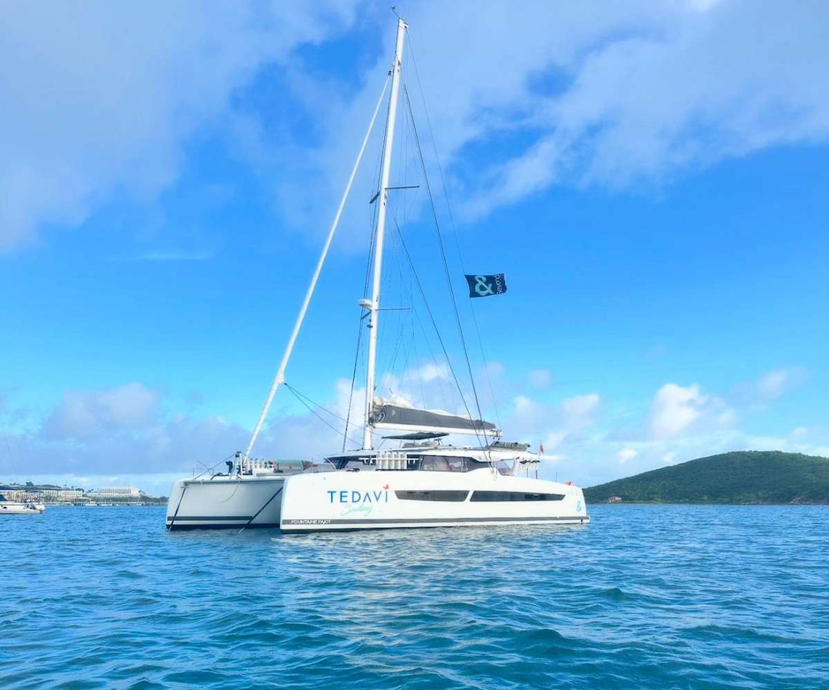 Introducing Tedavi, a brand new 2022 Fountaine Pajot Aura 51. Her sleek design seamlessly