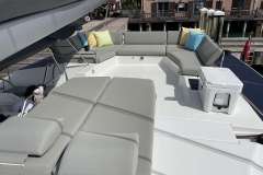She has a large flybridge offering 360 degree views with plenty of lounge seating and a