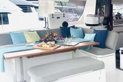 The large table in the cockpit seats eight adults comfortably for al fresco dining,