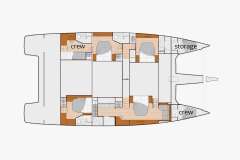 The Blue Dream can accomodate up to 8 guests in 4 double ensuite cabins : 1 master with king size bed & 3 doubles with queen size beds.The master cabin also has a TV.