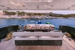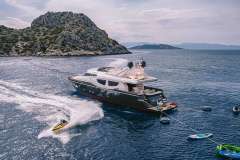 Presented by Amwax Prime, the majestic charter yacht THIS IS MINE is a 88 ft yacht featuring a jetski. The main attractions of THIS IS MINE are her generous space and experienced crew. She was constructed by the renowned boatbuilder Posillipo in 2008. An elegant refit was delivered in 2022. The well-planned yacht layout features 4 cozy cabins and easily accommodates a maximum of 10 guests.